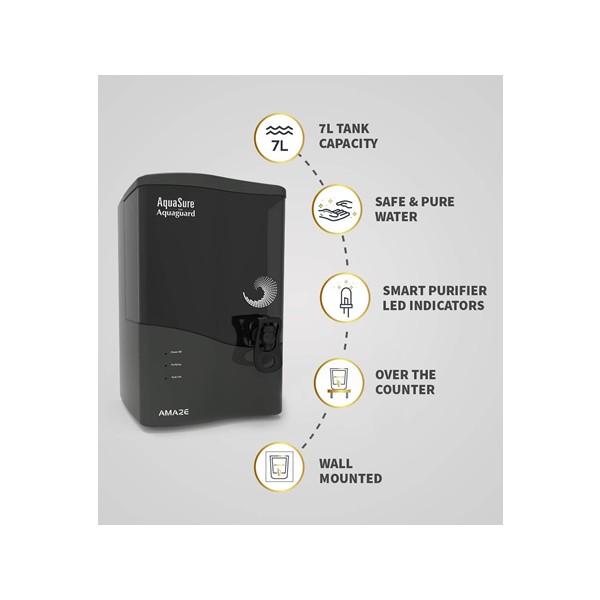 AquaSure From Aquaguard Amaze RO+UV+MTDS Water Purifier from Eureka Forbes with 7L Large Tank with water saving (Black)