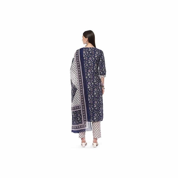 Women's Blue Cotton Screen Print Unstitched Suit Set