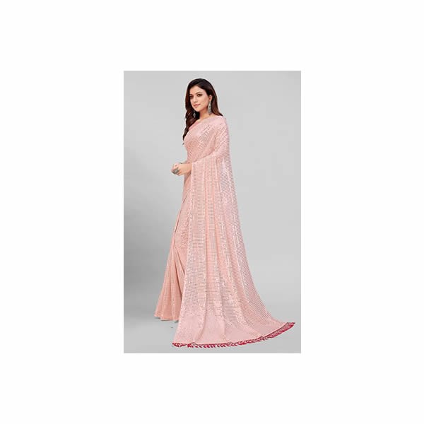 Saree Material- Georgette, Saree Length- 6.3 m, Saree Work Type- Sequins Embroidery Lace Work Border & Pallu Details: Border Work Type- Sequins Embroidery Lace Work Saree with Blouse Piece Dry Clean Only Party, festive, wedding wear, traditional wear. Best gift for your loved ones.