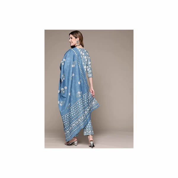 Blue floral print cotton Kurta Suit set with dupatta for women