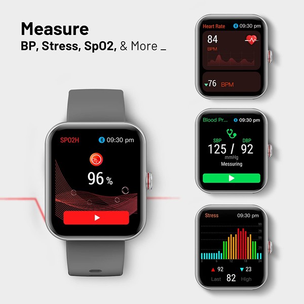 Crossbeats Ignite S3 1.7" Bluetooth Calling Smart Watch Full Touch Men Women Fitness Tracker Blood Pressure Blood Oxygen Heart Rate Monitor for iPhone Samsung Android (Ice Silver)