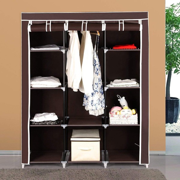 KRISHYAM Fabric Fancy and Portable Foldable Almirah Wardrobe with 6 Cabinet and 2 Long Shelves Clothes Organizer (Brown)