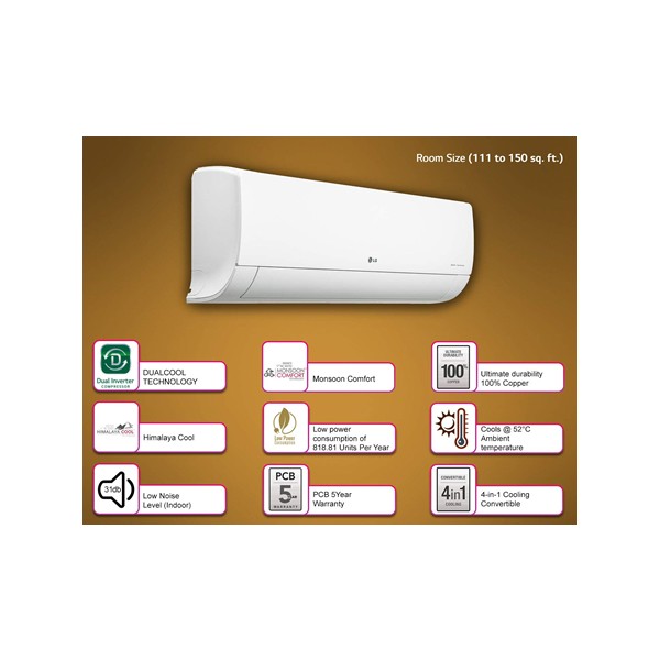 LG 1.5 Ton 5 Star Inverter Split AC (Copper, 4-in-1 Convertible Cooling, HD Filter with Anti-Virus Protection, 2021 Model, MS-Q18ENZA, White)
