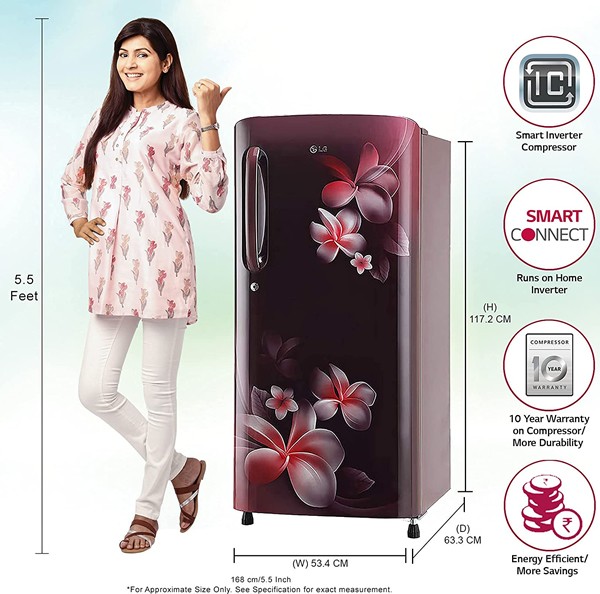 LG 190 L 4 Star Inverter Direct-Cool Single Door Refrigerator (GL-B201ASPY, Scarlet Plumeria, Moist 'N' Fresh)