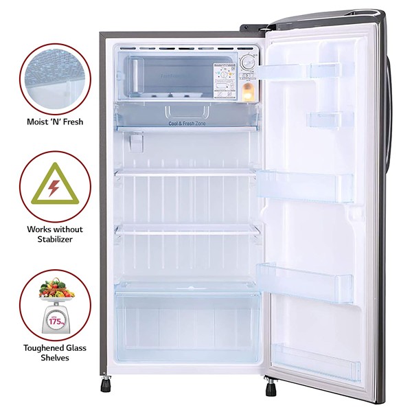 LG 215 L 4 Star Inverter Direct Cool Single Door Refrigerator (GL-B221APZY, Shiny Steel)