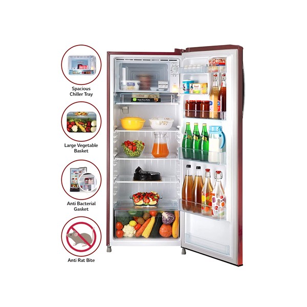 LG 270 L 3 Star Inverter Direct-Cool Single Door Refrigerator (GL-B281BSCX, Scarlet Charm, Moist 'N' Fresh)