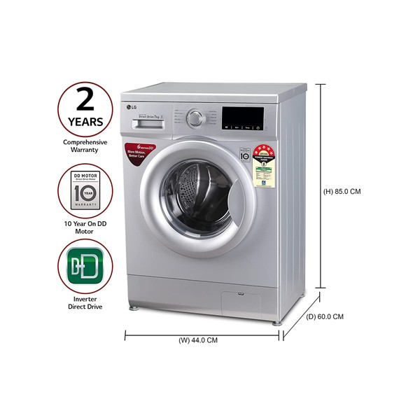LG 7.0 Kg 5 Star Inverter Fully-Automatic Front Loading Washing Machine (FHM1207ADL, Silver, 6 Motion Technology)