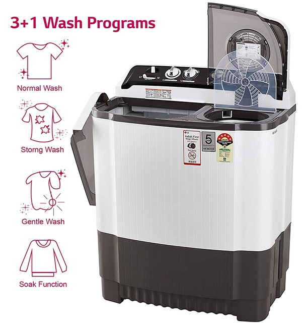LG 8 Kg 5 Star Semi-Automatic Top Loading Washing Machine (P8035SGMZ, Grey, Collar Scrubber)