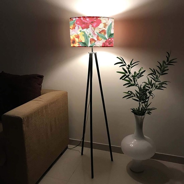 Nutcase Designer Tripod Floor Lamp Standing Light for Living Rooms-Printed Fabric Shade-Made in India -Floral Colors