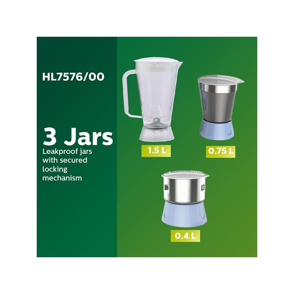 Philips Amaze HL7576/00 600-Watt Juicer Mixer Grinder with 3 Jars (Celestial Blue/Bright White)