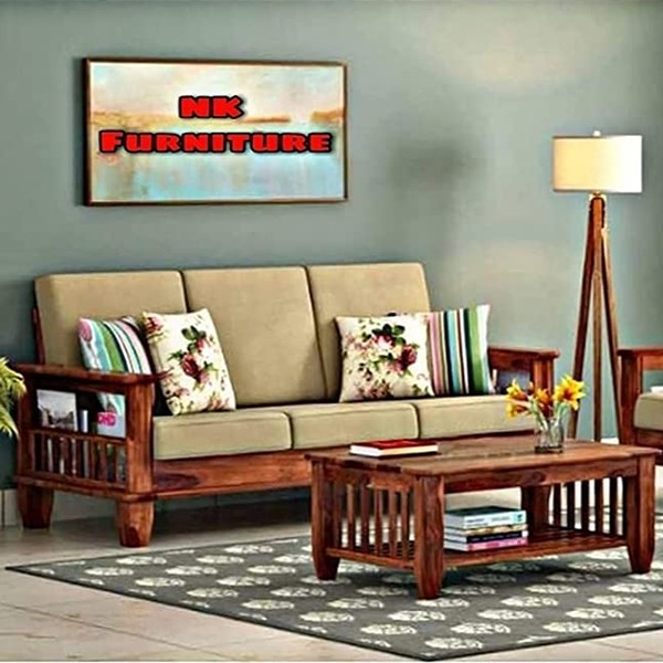 RK WOOD Rosewood Sofa Set 5 Seater Home Office Furniture Living Room | Wooden Sofa Set 3+1+1 | Drawing Hall Sofa Set 5 Seater Without Pillow | Cream Cushions | Teak Finish