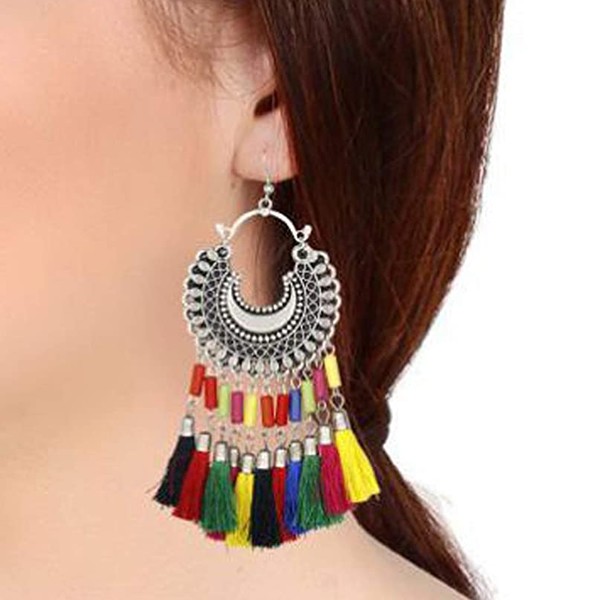 Samridhi DC Multicolour Fabric Tassel Silver Alloy Earring for Women