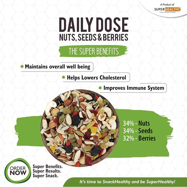 SuperHealthy Dry Fruit Nuts, Seeds & Berries Organic Mix | Nutritious, Roasted and Crunchy Trail Snack | 20+ Varieties like Almond, Cashew, Cranberry, Sunflower Seed, Pista (Pack of 1 (325g))