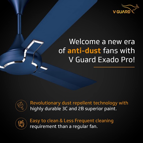 V-Guard Exado Pro Decorative Ceiling Fan with Anti-Dust Technology (1200 mm, 3 Year Warranty)(Raiband Blue Mat)