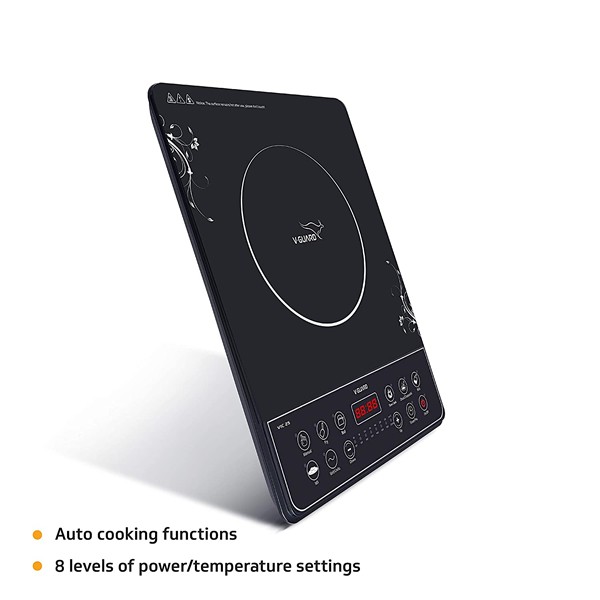 V-Guard VIC 25 Induction 2000-Watts Manual Aluminium Induction Cooktop with 1 Burner, Black