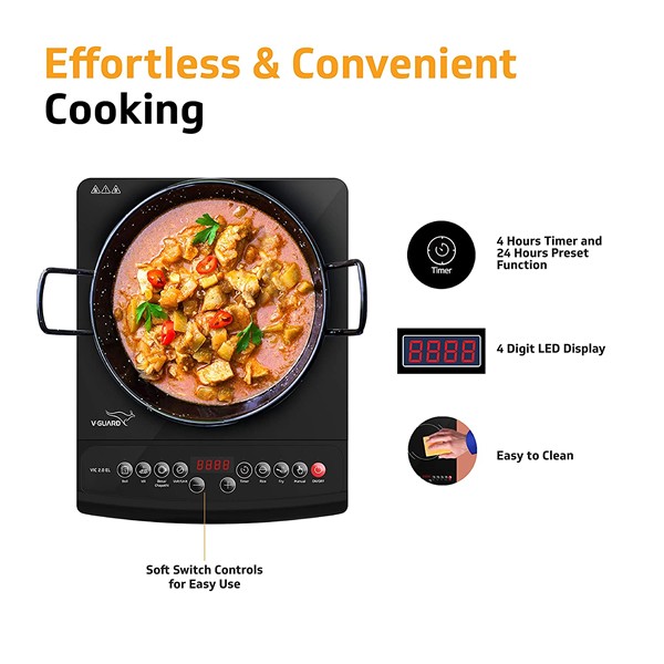 V-Guard VIC 25 Induction 2000-Watts Manual Aluminium Induction Cooktop with Push Button Controls, 1 Burner, Black Visit the V-Guard Store