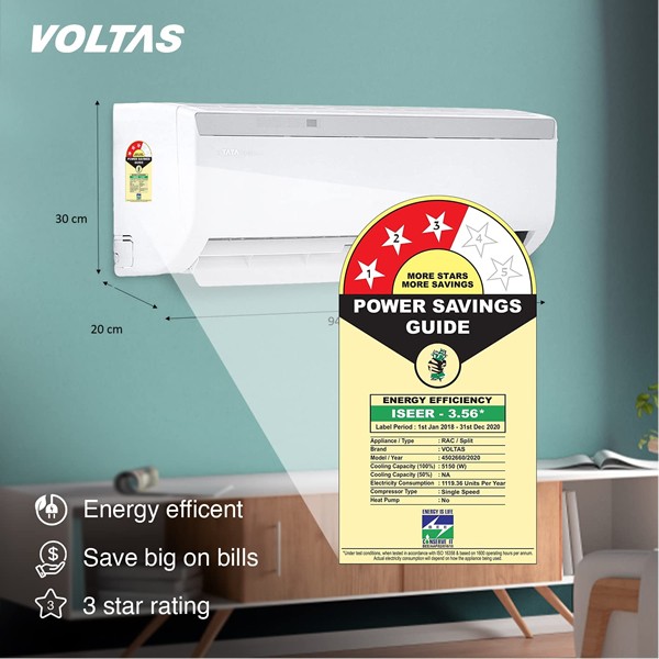 Voltas 1.5 Ton 3 Star Split AC (183EZA, White)