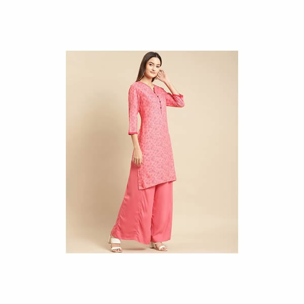 Women 100% Cotton Pink Gold Printed Calf Length Straight Kurti