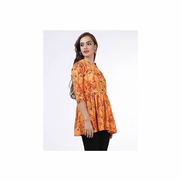 Women's Floral Embroidered Rayon Slub Fabric Navy Blue Color 3/4th Sleeve Round Neck Hip Length Top Explore the collection of beautifully designed Top . Impress Everyone With Your Stunning Traditional Look By Wearing Rayon Slub Fabric Navy Blue Work Round Neck 3/4th Sleeve Each piece is elegantly crafted and will surely add to your wardrobe.Pair this piece with heels or flats for a gracefull look.