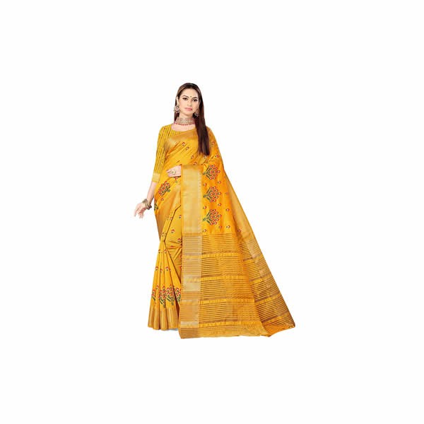 Women's Assam Cotton Silk With Golden Border Printed Paithani Soft Silk Double Pallu Saree With Blouse Piece