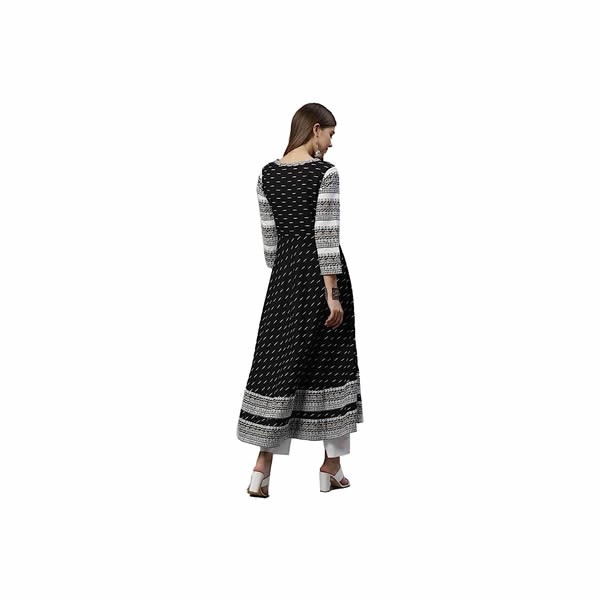 Women's Cotton & Cotton Slub Ikat Printed Anarkali Kurta (Black)I don’t have full picture for this one, but it’s a very good in quality, breathable simple yet chic, since it’s cotton can be worn in summers as well