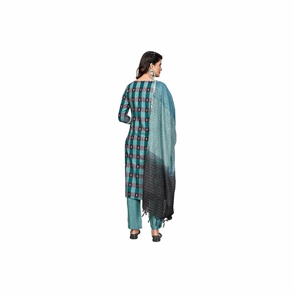 Women's Cotton Blend Embroidered & Mirror Straight Stitched Kurta Pant with Dupatta