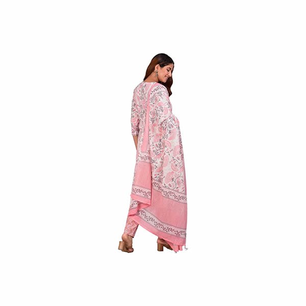 An amazing range of women kurta Set in soft and solid colors that looks perfect for regular wear. With beautiful designs and patterns. These apparels are very stylish and comfortable too. Get rid of the 'regular' look this season wearing Suit Set by YASH GALLERY. With a perfect blend of comfort and traditional style, This Geomatrical Printed Straight Kurta from YASH GALLERY embellished with zari embroidery, with Floral printed pant & floral printed dupatta. Tailored from Cotton. Product Kurta Length: 46 Inches, Pant Length: 36 Inches.