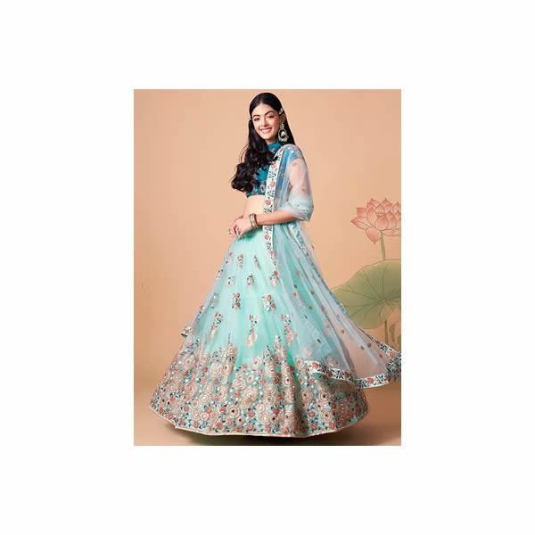 Women's Net Embroidered Semi-Stitched Bridal New Lehenga Choli with Dupatta0