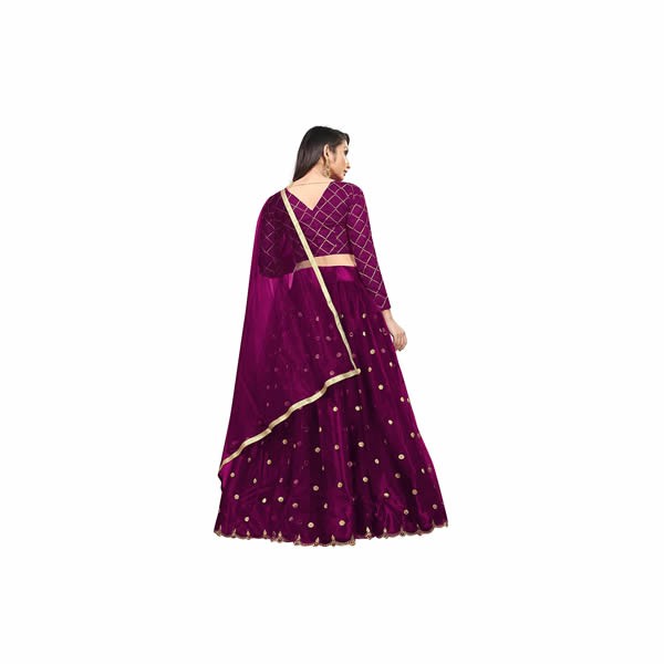 This is a PATBRO's beautiful self design lehenga choli with embroidery work in choli and zari work in lehenga. It contains 1 lehenga choli with dupatta. Lehenga Details : Type :- Semi-stitched. Fabric : Net. Work : Jari embroidery . Size : waist-42 inches, height-44 inches. Blouse details :: type :- unstitched. Fabric : Banglori silk. Work : Heavy embroidered with threads. size : up to 42 inches .Dupatta details :: Type :- ready :: Fabric : net. Dupatta length: 2.00 m. Wash Care: Dry Clean only.