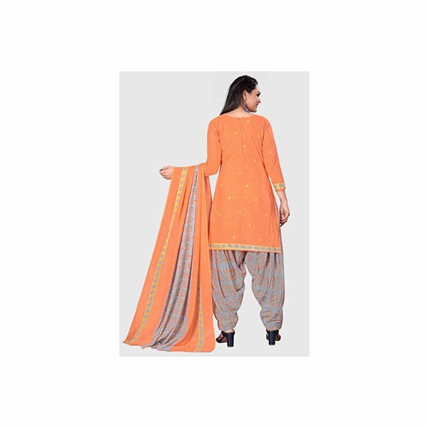 Beautiful Suit look pretty like never before.Wearing this Orange Color Suit which made from Cotton with Grey & Orange Colored Cotton Patiala Bottom and Grey & Orange Colored Cotton Dupatta.Suit has also decorative work like Floral.This beautiful suit features a classy Printed Work all over,which makes it a smart pick for all occasions. You can wear this Suit in different styles. You can wear it occasionally or casually.