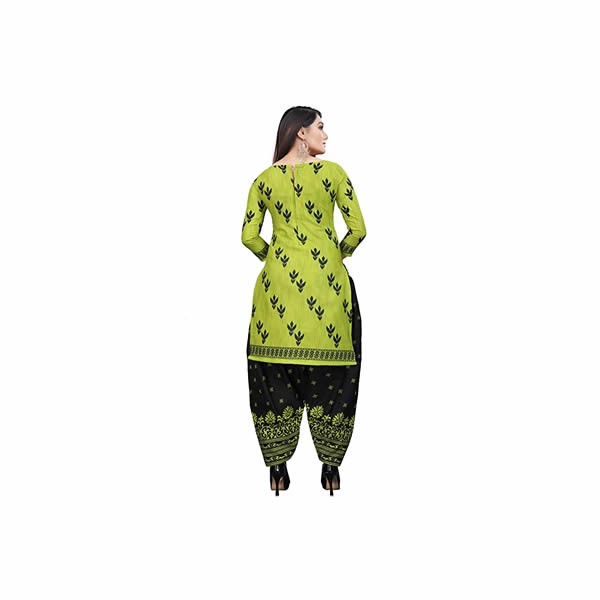 Women's Parrot Green Cotton Printed Unstitched Salwar Suit Material