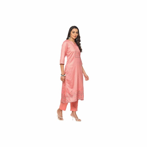 Women's Peach Cotton Screen Print Unstitched Suit Set