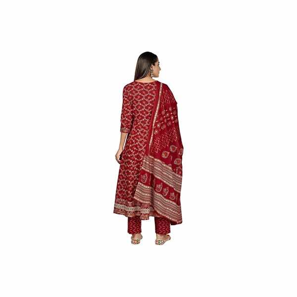 Women's Print & Embroidered Anarkali Cotton Stitched Kurta Pant with Dupatta
