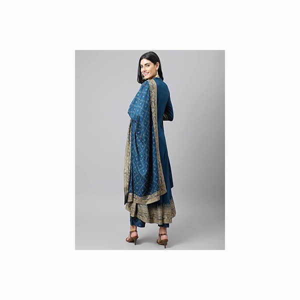 Women's Rayon Flared Kurta And Palazzo With Dupatta Set 0
