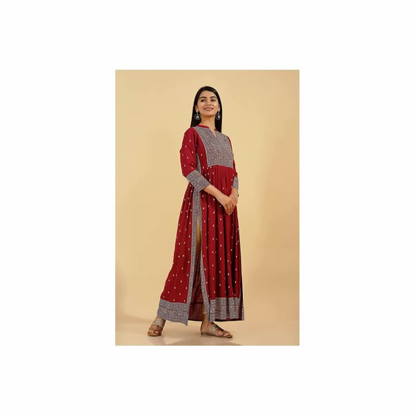 An amazing range of womens ethnic wear in soft and solid colors that looks perfect for regular wear. With beautiful designs and patterns. These apparels are very stylish and comfortable too. Get rid of the regular look this season wearing Kurta by Kipek. This Printed A-line Kurta from Kipek exhibits buttons on yoke, side slit,flared along with v-neck & 3/4th Sleeves. Tailored from rayon. Product Length: 54 Inches.