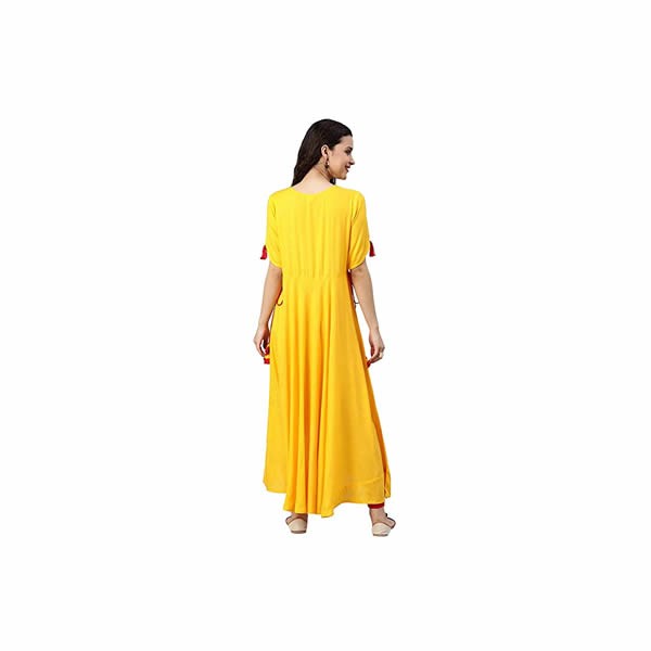 Women's Rayon Slub Embroidered Up-Down Kurta (Yellow)