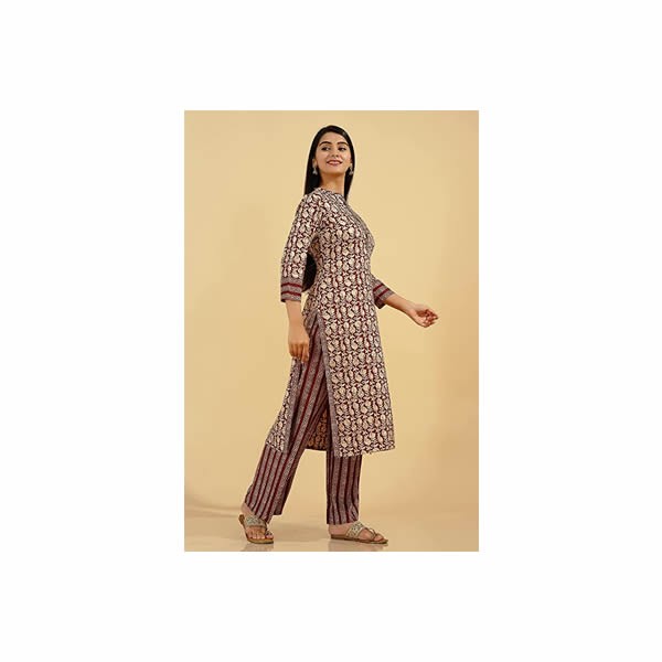 An amazing range of womens ethnic wear in soft and solid colors that looks perfect for regular wear. With beautiful designs and patterns. These apparels are very stylish and comfortable too. Get rid of the regular look this season wearing Kurta set by Kipek. This Straight printed Kurta palazzo set from Kipek exhibits Buttons on yoke along with Mandarin Collar & 3/4th Sleeves. Tailored from Rayon foil.