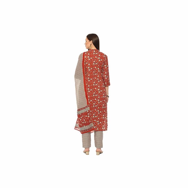 Women's Red Cotton Hand Block Print Unstitched Suit Set