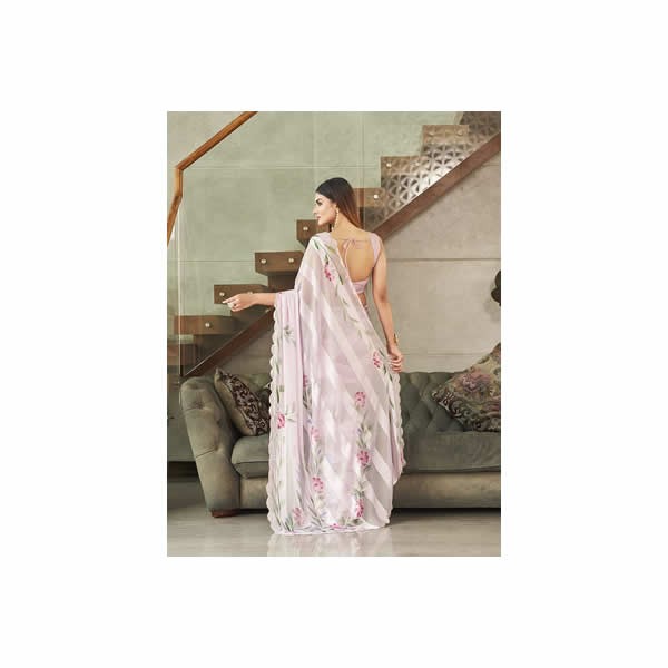 Womanista Women's Baby pink colored satin saree with hand print and scalloped border(TI3310_Baby pink_Onesize)