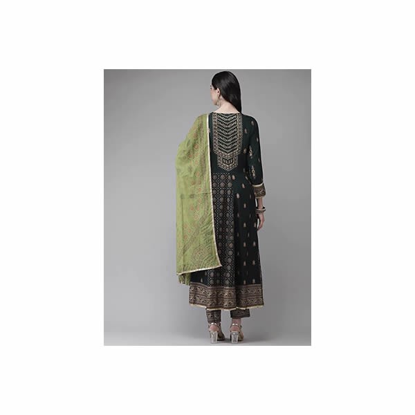 Women's Viscose Rayon Green Embroidered Anarkali Kurta suit set With Dupatta & Pants
