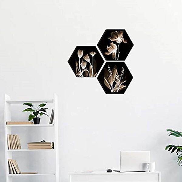 SAF Set of 3 Hexagon Preety White Flower UV Textured MDF Home Decorative Gift Item Painting 17 Inch X 17 Inch