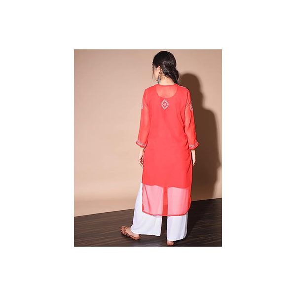 lucknowi Chikankari sheer kurtis which gives your look a new fashion trend, made of georgette fabric, hand work, below knee length, has round neck, 3/4th sleeves, comes to your home without inner, best suits with palazzo, jeans and heels. Size Chart In Inches - Size : M "Bust 38 Length 46" Size : L "Bust 40 Length 46" Size : XL "Bust 42 Length 46"