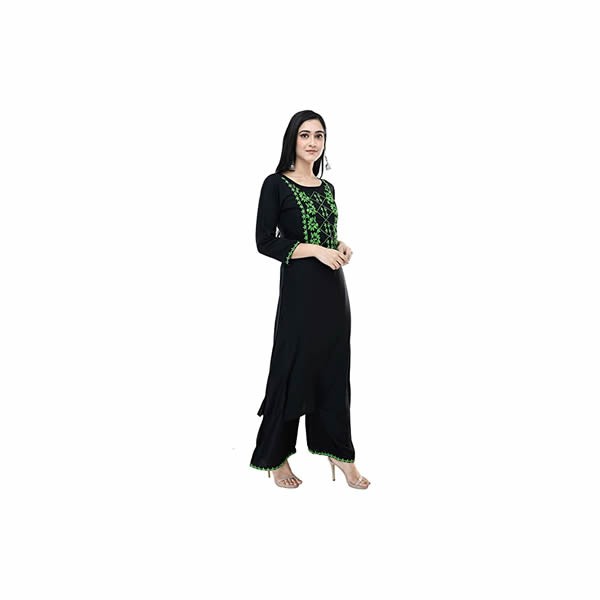 Women Rayon Black Kurti Palazzo